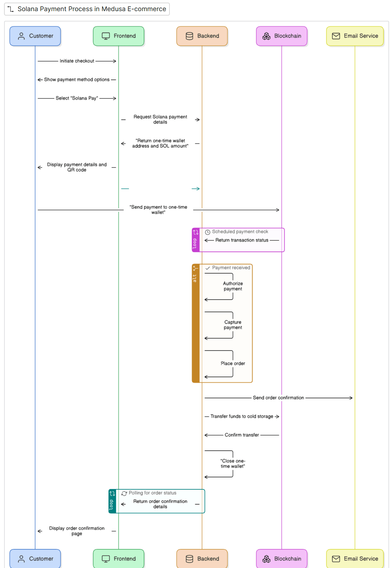 Most crypto payment solutions available today are built around third-party processors, bringing extra fees, KYC hurdles, and limited control—far from the original DeFi vision of direct, peer-to-peer payments powered by code. This project is about exploring what’s technically possible when you cut out the middleman: a truly decentralized Solana payment module for MedusaJS 2. In this post, I’ll dive into the architecture, share a live demo, and invite you to get involved as an early tester. This is about what crypto was always meant to be—no gatekeepers, just code enabling commerce between two parties.